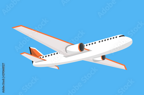 © Art Alex, Fototapeta premium Airplane on a isolated blue background. Flat vector illustration.