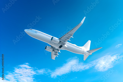© nelsonpeng99, Fototapeta premium Airplane on blue sky white clouds