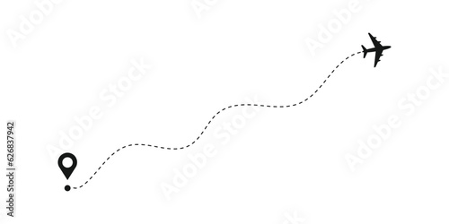 Fototapeta premium Airplane routes vector icon. Plane paths symbol. Aircraft tracking, planes, travel, map pins, location pins. Vector illustration of travel icon. Trip, travel, holiday vector icon