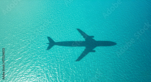 © Kastain, Fototapeta premium Airplane Shadow Cast Over Vibrant Turquoise Tropical Waters Creating Striking Visual Contrast