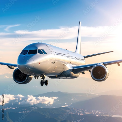 © Dafid, Obraz premium Airplane soaring over clouds and mountains
