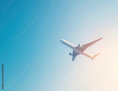 © Priya, Obraz premium Airplane soaring through the blue sky