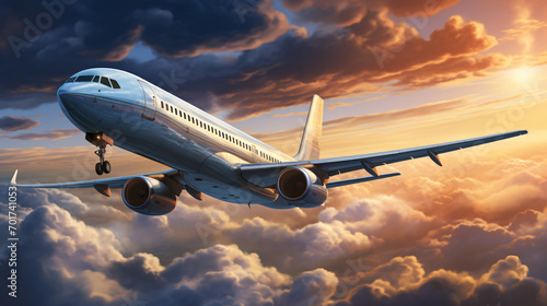 © Gennie Fx, Obraz premium airplane soaring through the boundless sky. Generative AI