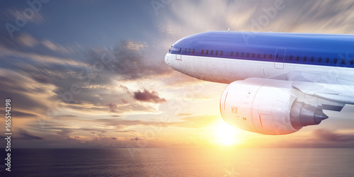 © Sergey Nivens, Fototapeta premium Airplane surfing the sky . Mixed media
