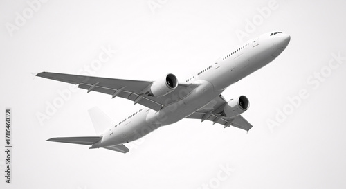 © shahzaib, Obraz premium Airplane taking off isolated on white background
