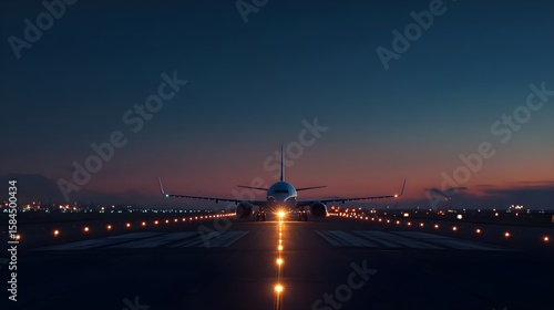 Fototapeta premium Airplane Taxiing in Blue Hour — Runway Lights and Peaceful Sky