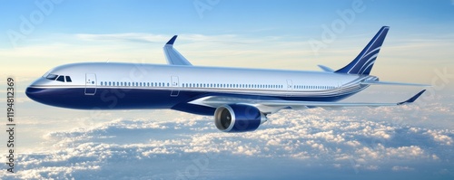 Fototapeta premium Airplane Travel: Realistic airplane model in the sky, focus on modern travel,...