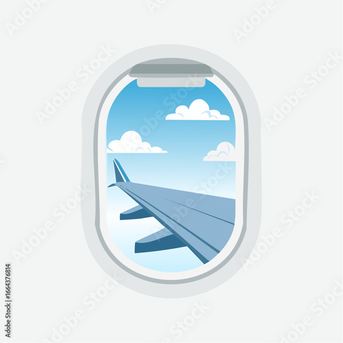 Obraz premium Airplane Window View Of Blue Sky With Clouds