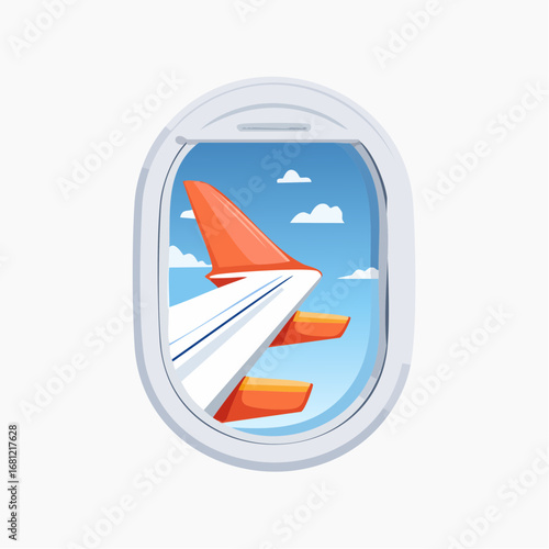 © Sam, Obraz premium Airplane Window View Of Wing And Sky