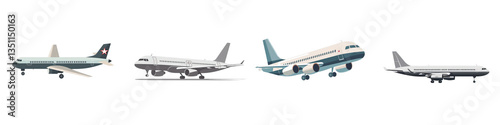 © Rozzie, Obraz premium Airplanes fleet, aerial view, white background isolated on white or transparent