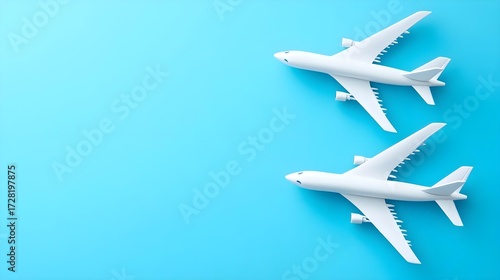 © HiSea, Fototapeta premium Airplanes in flight blue background 3d models digital art aerial view aviation concept