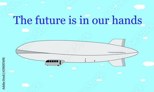 © Andrii Artamonov, Fototapeta premium Airship. Gray on a background of blue sky. Vector graphics. Flat vector illustration. There is a place for text. Copy space.