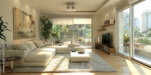 © duyina1990, Obraz premium Airy and bright living room with large windows and a balcony