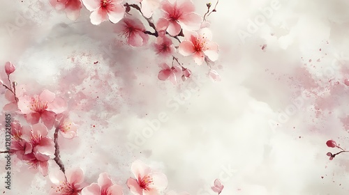 Fototapeta premium Airy cherry blossom floral pattern, hand-painted pastel pink petals drifting over a soft watercolor wash, delicate floating elements, seamless springtime elegance,
