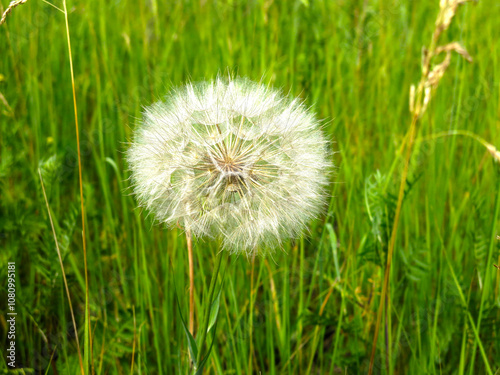 © Lumatis, Fototapeta premium airy white ripe dandelion in the field