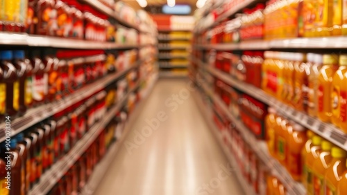© Jiraphiphat, Naklejka premium Aisle with various bottled sauces and condiments, flavor enhancers, cooking essentials