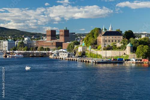 Obraz premium Akershus Fortress and the townhall of Oslo in background seen from the waterside