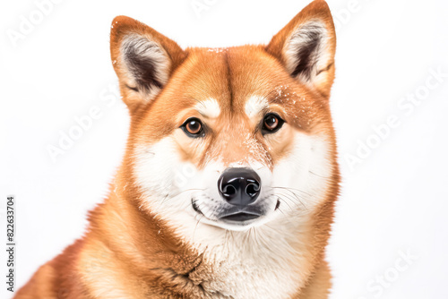 Fototapeta premium Akita Inu in studio setting against white backdrop, showcasing their playful...