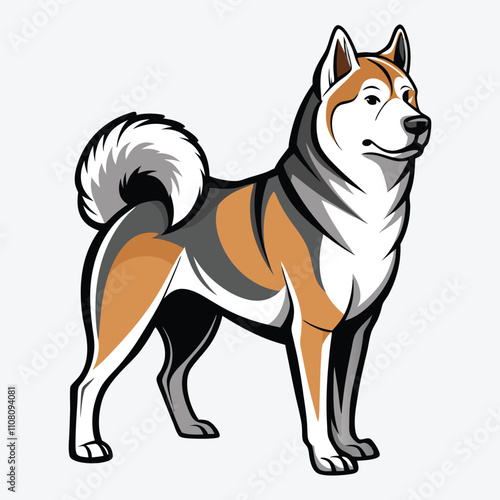© lokshmon, Obraz premium Akita vector White background illustration Generative Ai