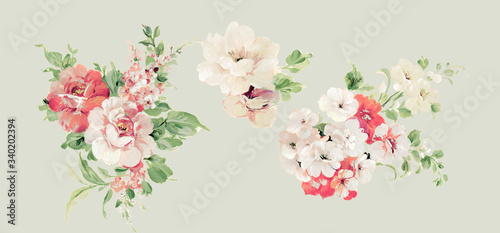 © lin, Obraz premium Akwarela ilustracja kwiaty. Kompozycja ręczna. Duży zestaw elementów akwarela.