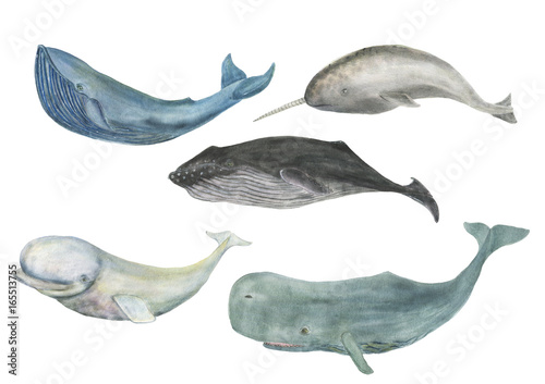 Obraz premium Akwarela malarstwo rodzina wielorybów