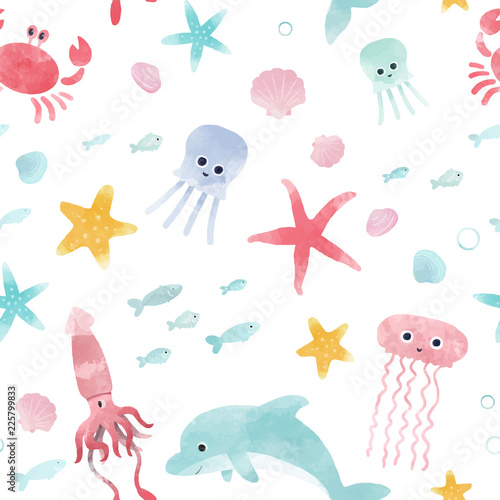 Fototapeta premium Akwarela morskie życie wektor wzór