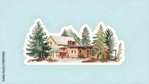 Obraz premium akwarela, warsztat mikołaja, vintage, uroczy, świąteczny, ilustracja,...