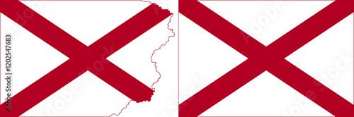 © Alexprint, Obraz premium Alabama flags vector. Standard flag and with torn edges