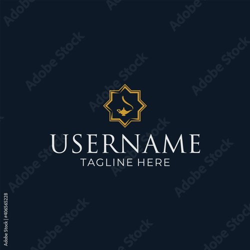 © ditjoypro, Obraz premium Aladdin lamp logo design with an Islamic octagonal frame.