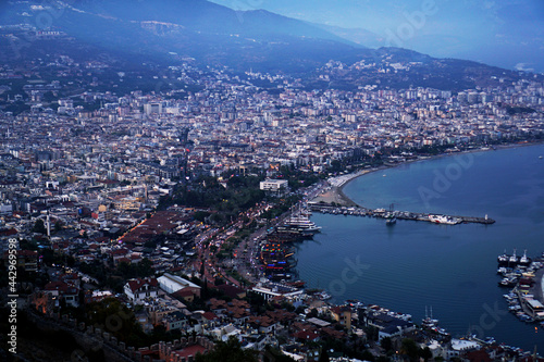 © brillianata, Fototapeta premium Alanya city - Turkey, harbor in the evening. View of the night pier