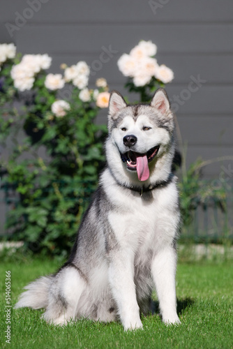 Fototapeta premium alaskan malamute dog in the garden