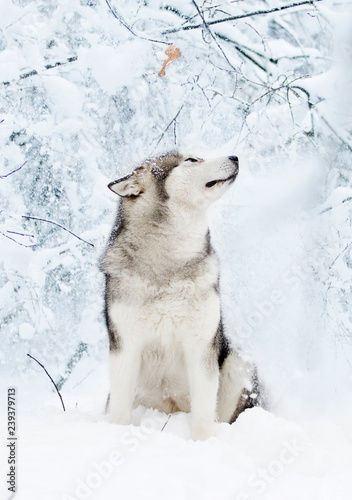 © Happy monkey, Fototapeta premium Alaskan Malamute dog on a winter