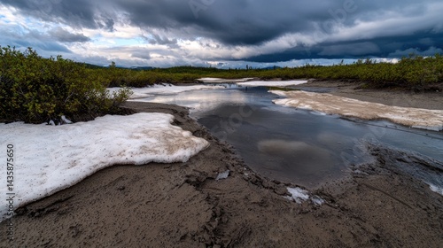 Fototapeta premium Alaskan Tundra Meltwater Puddle Under Storm Clouds
