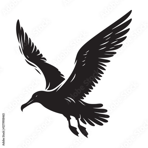 © Faysal, Obraz premium Albatross Bird Silhouette Vector Illustration, Solid White Background.