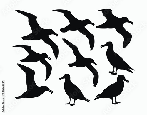 Fototapeta premium Albatross Flying Silhouette Set Vector Template