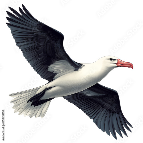 © Shyamal, Naklejka premium Albatross flying with wings spread wide against PNG black background bird