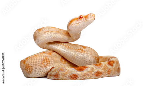 Fototapeta premium Albino boa constrictor reptile on white backdrop