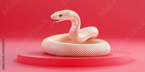 Fototapeta premium Albino Cobra on Pink Platform: A striking, close-up image of a white albino...