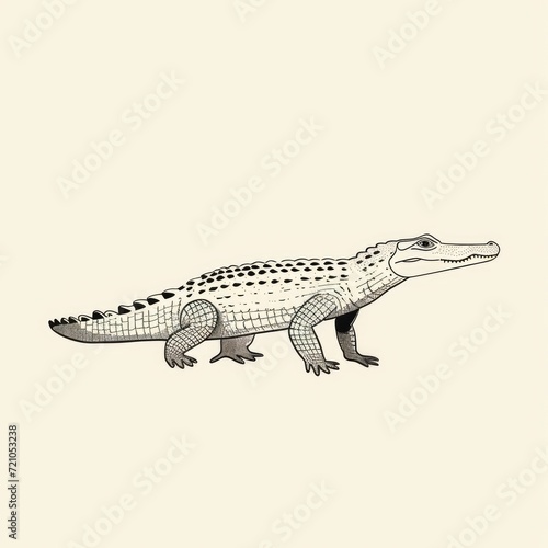© NikahGeh, Naklejka premium Albino Crocodile Illustration: Detailed Line Art of Juvenile Reptile