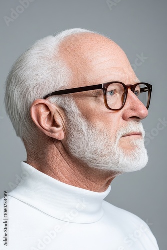 Fototapeta premium Albino man wearing white turtleneck, with soft light emphasizing wrinkles and...