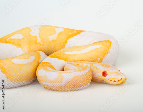 Obraz premium Albino Piebald Ball Python on a white background