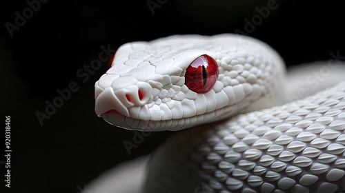 Fototapeta premium Albino Snake: An albino snake with pure white scales and striking red eyes,...