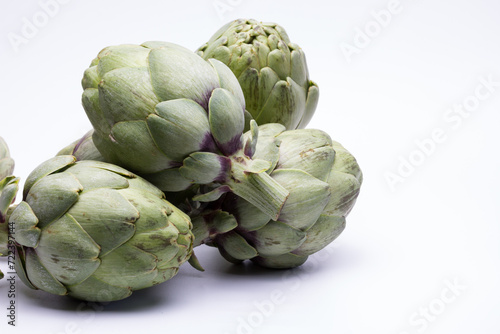 © ajcespedes, Obraz premium Alcachofas verdura cosechada fresca sobre fondo blanco