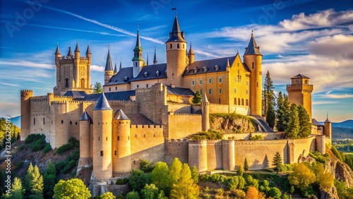 Naklejka premium Alcazar of Segovia Castle in Spain, Medieval Fortress with Turrets and Towers