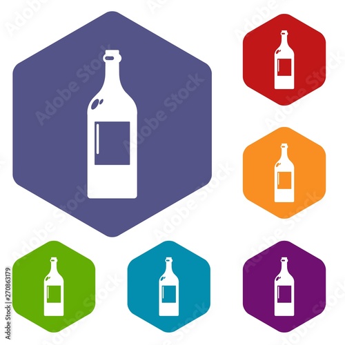Fototapeta premium Alcohol bottle icons vector colorful hexahedron set collection isolated on white