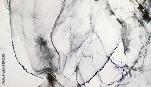 © amixstudio, Naklejka premium Alcohol ink abstract black-white background. Contrasting acrylic paint waves in water. Texture of marble. Pattern for printing. Vibrant stains and splashes