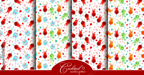 Fototapeta premium Alcoholic juices cocktails - Seamless pattern. Ice, strawberry, dragon fruit...