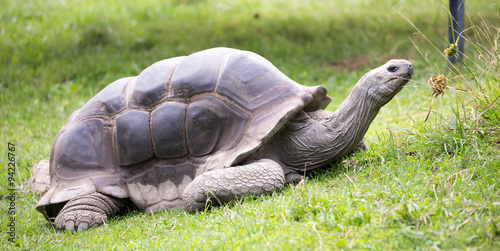 Naklejka premium Aldabra Giant Tortoise (Aldabrachelys gigantea) browsing for food. Alameda...