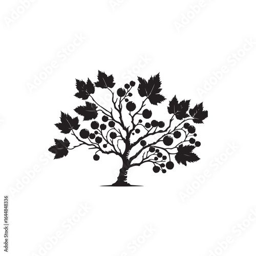 © Faysal, Fototapeta premium Alder Tree Silhouette Illustration – Black Outline on White Background.
