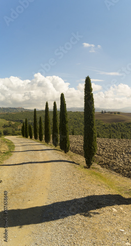 © Mike Mareen, Naklejka premium aleja cyprysów przy drodze